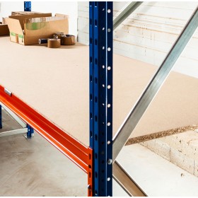 Ce kit pour un niveau complet se distingue par sa modularité car il est composé d'une juxtaposition de plusieurs tablettes (largeurs 150 mm et 200 mm) pour atteindre la longueur totale de 2400 mm. Cette conception intelligente facilite le montage et permet une répartition homogène des charges sur toute la surface.