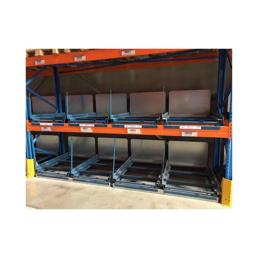 - Profondeur 1100 mm (compatible avec toutes les marques de rayonnages à palettes).