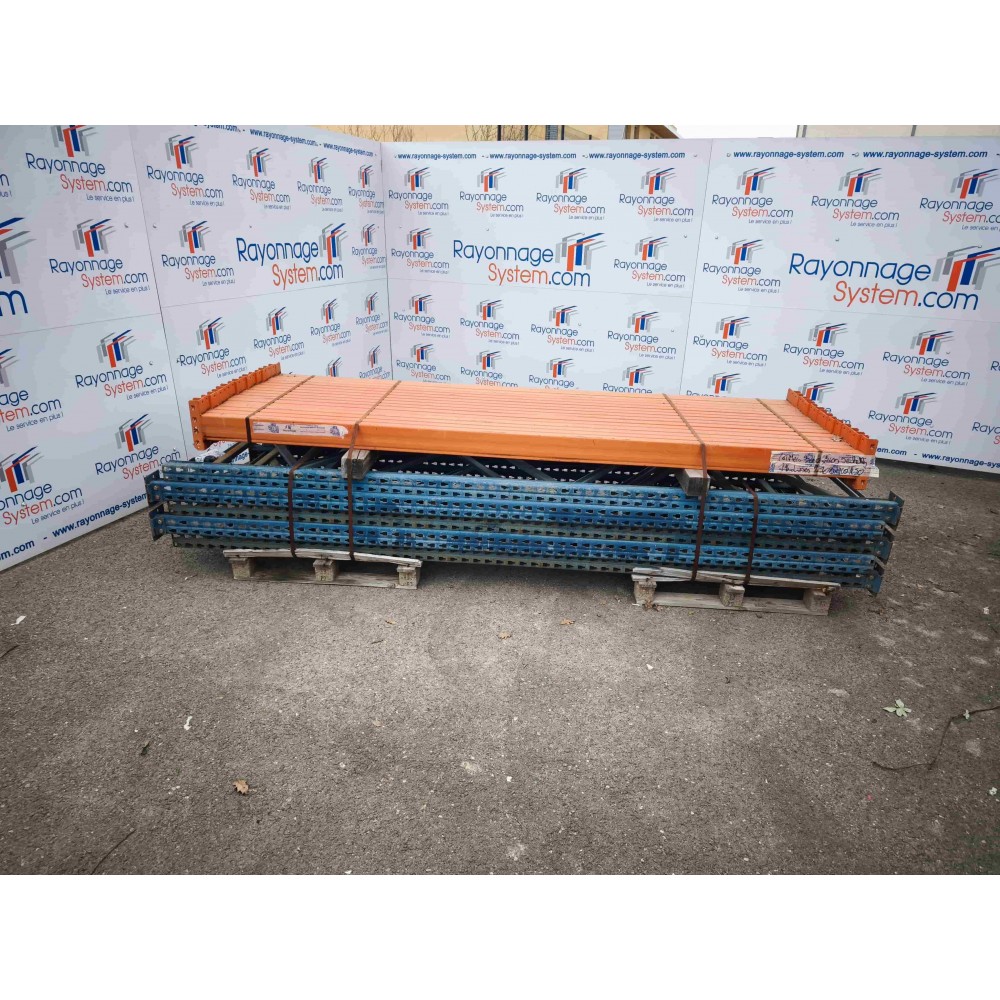 Profitez de la robustesse d'une grande marque européenne au meilleur prix. Ce kit complet de rack à palettes d'occasion permet de créer un ensemble de stockage de 11200 mm de long, idéal pour l'organisation de vos réserves ou de vos entrepôts logistiques.